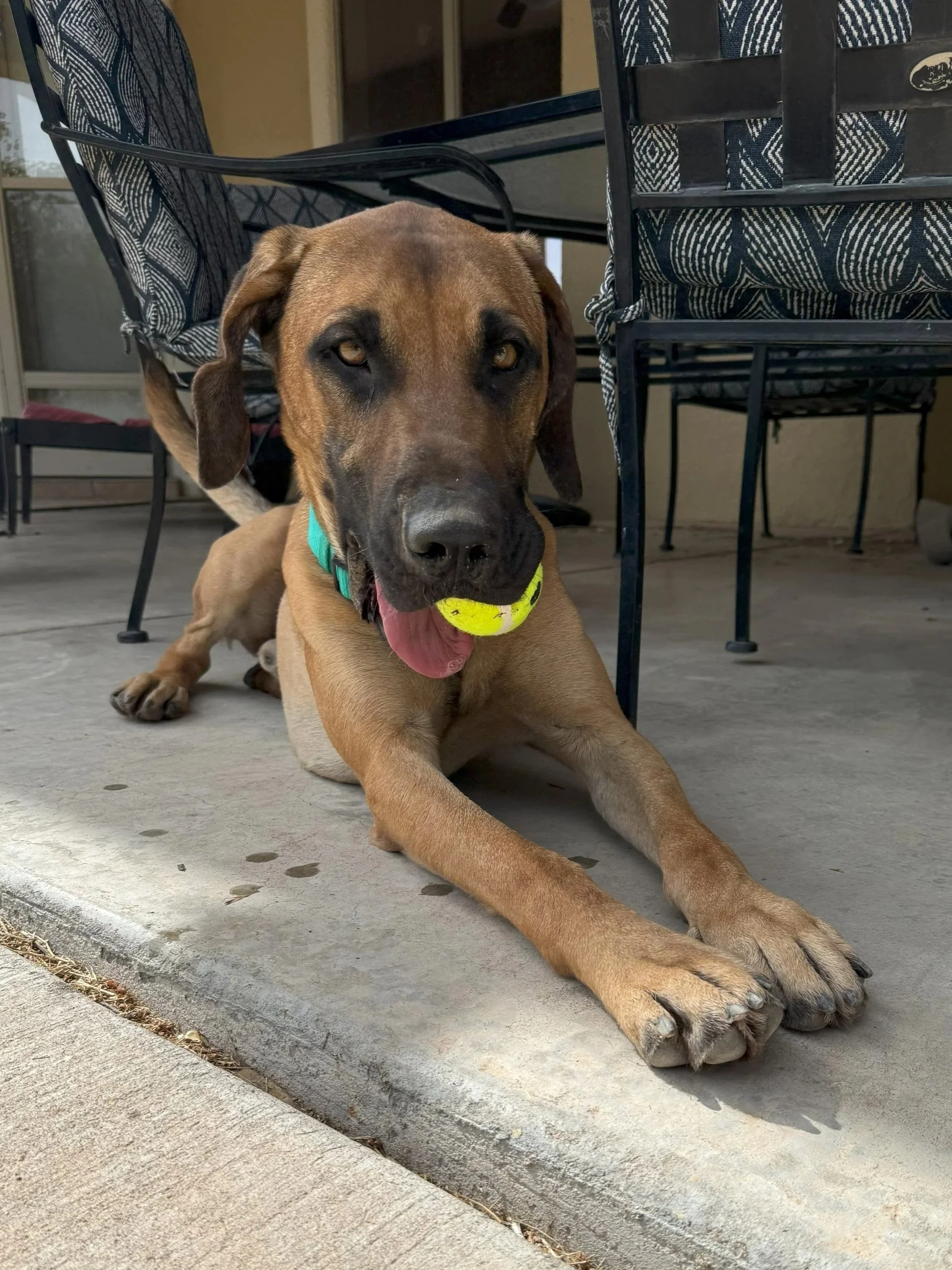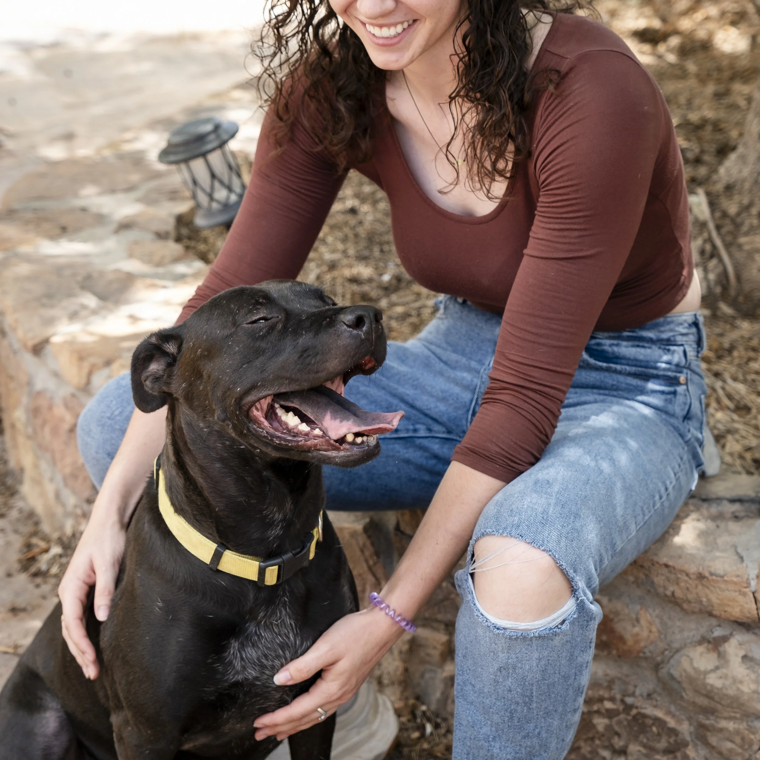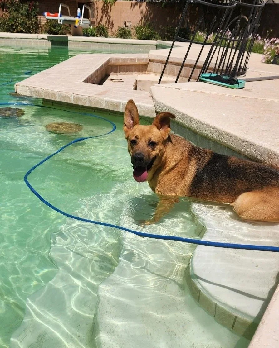 Peony spent the majority of her life at El Paso Animal Services, arriving as an injured puppy in 2023. After waiting a year in the shelter, Peony came to the Ranch, learned how to be a dog again, and is now the beloved member of a doting family.
